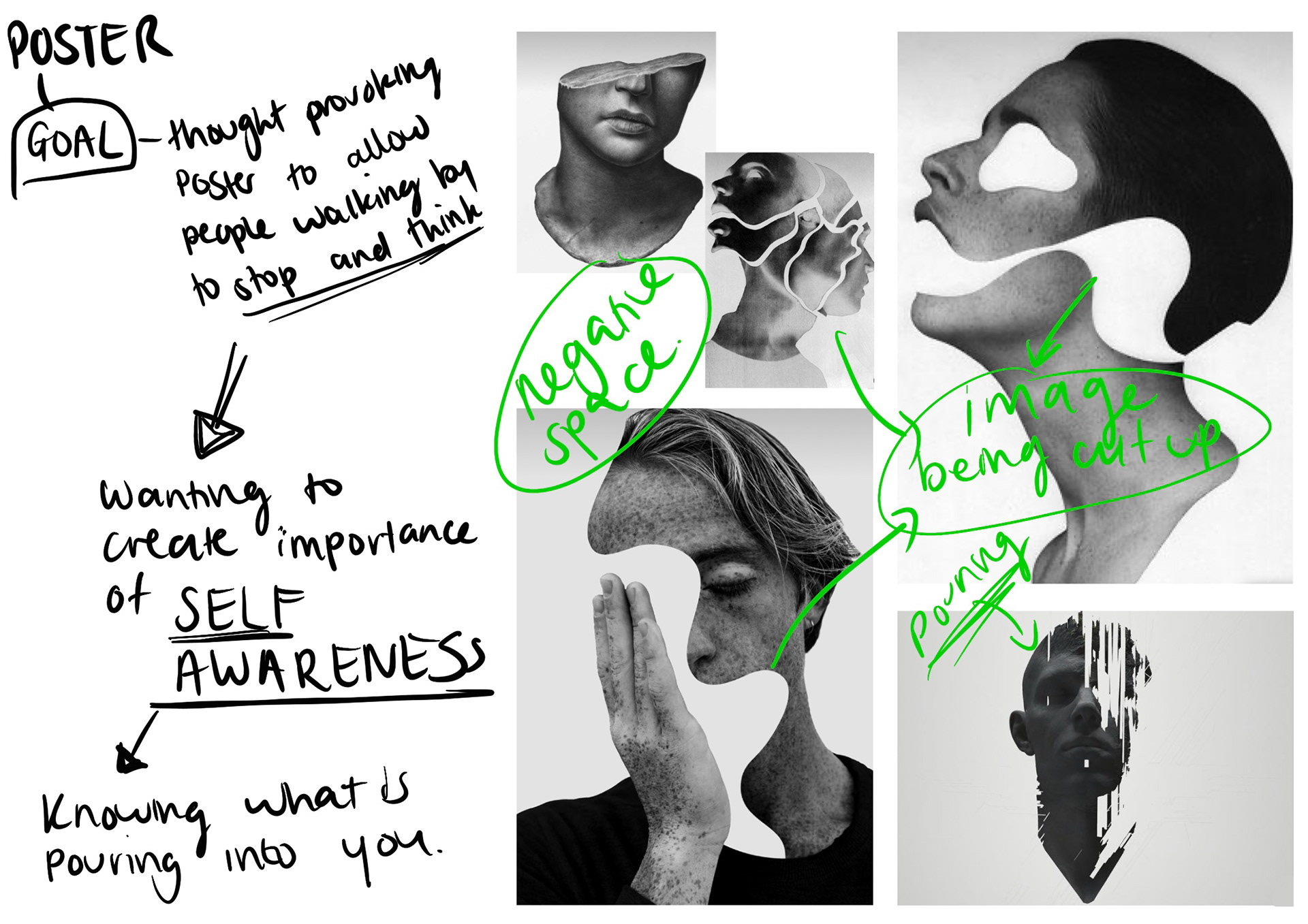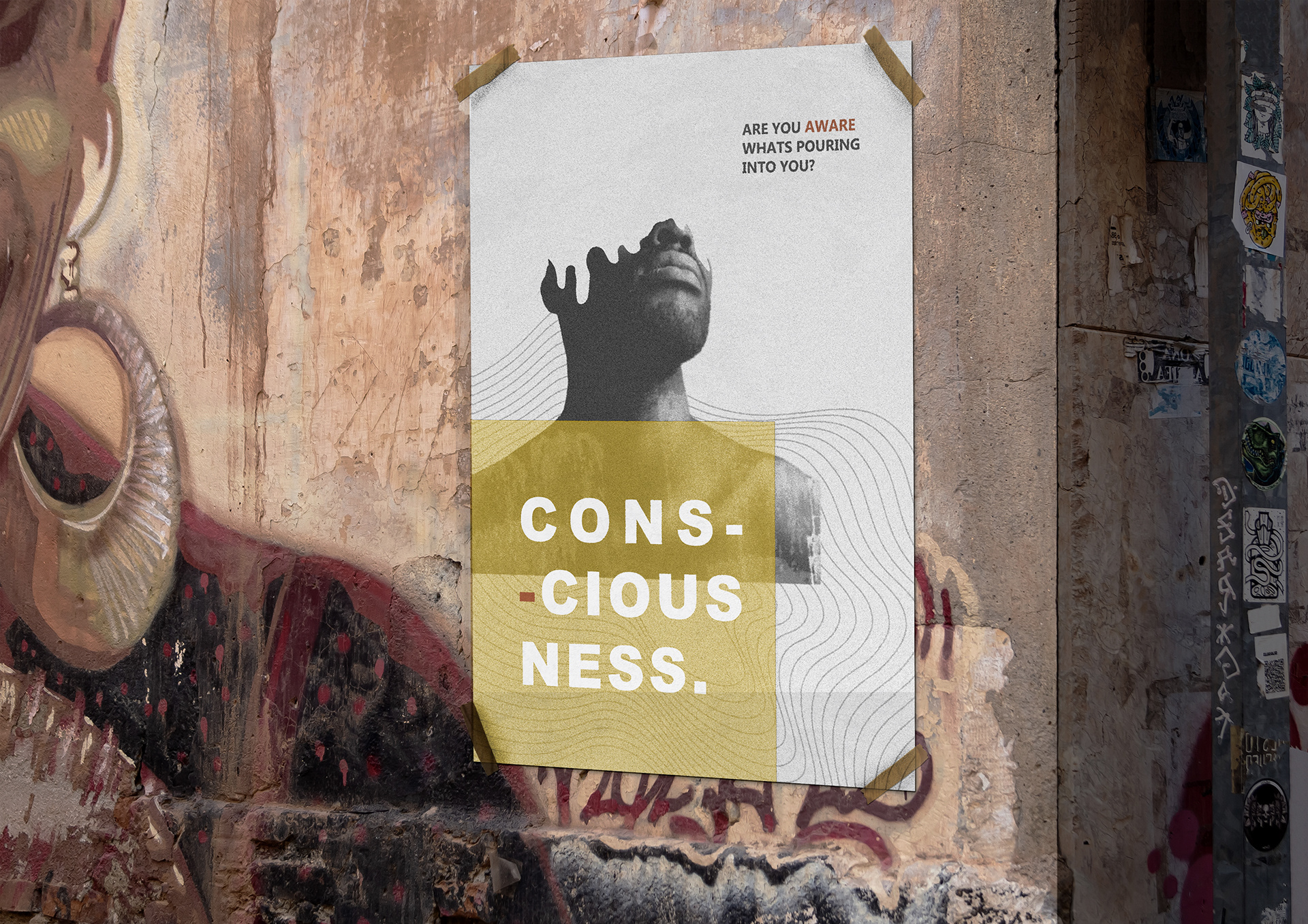 Graphic design internship project for a poster. The brief of the design was to create a thought provoking poster that would allow people to stop and think. The goal was to highlight the importance of self-awareness.